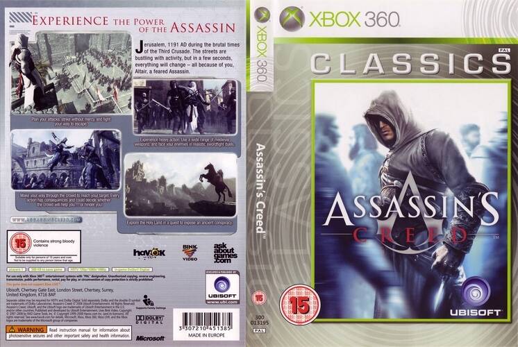 • Sur Xbox 360, si on doit le comparer aux autres jeux, il a une place plus que méritante par rapport au suivant qui techniquement sont plus approfondie, mais pas forcément mieux réussit techniquement. Apparemment, Assassin's Creed est moins connu que la suite Assassin's creed 2 ce qui est bien dommage, car il pose les bases de l'acteur principal Desmond Miles. Certes répétitif, mais d'une qualité graphique exceptionnelle pour un premier épisode. À faire sans problème.