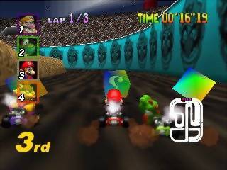 - J'ai une aversion pour la Nintendo 64 qui me rebute. De la 3D du pauvre et souvent comparer à la Playstation qui en était loin. Ce jeu a existé, mais il est à oublier, je vous envoie directement sur Gamecube dont la saga Mario Kart montre son meilleur côté. Ce jeu me fait penser à un jeu kart sur Playstation raté, mais apprecier a cause ou grace a un souvenir d'enfance que les joueurs ont eu jeunes.
